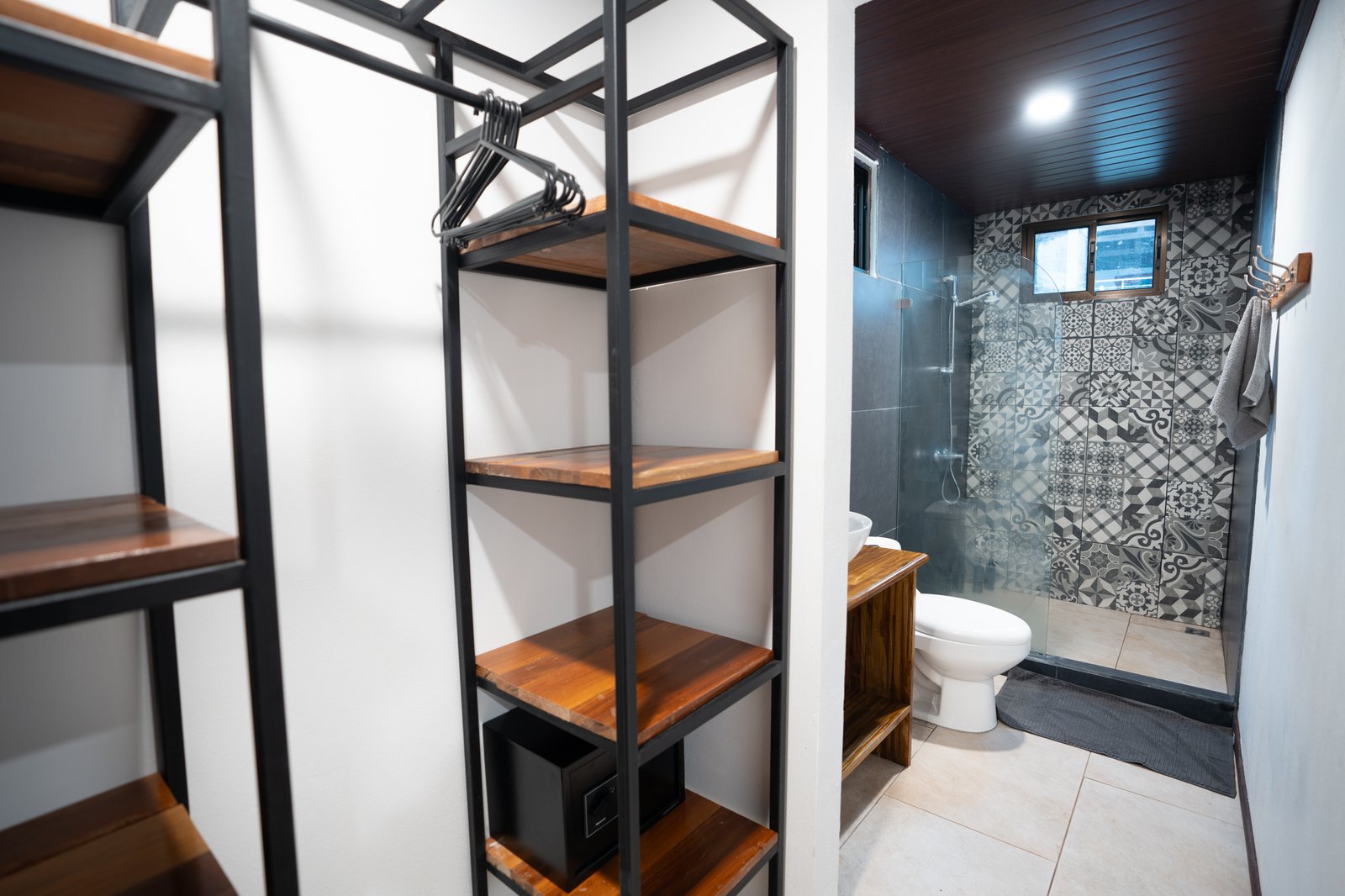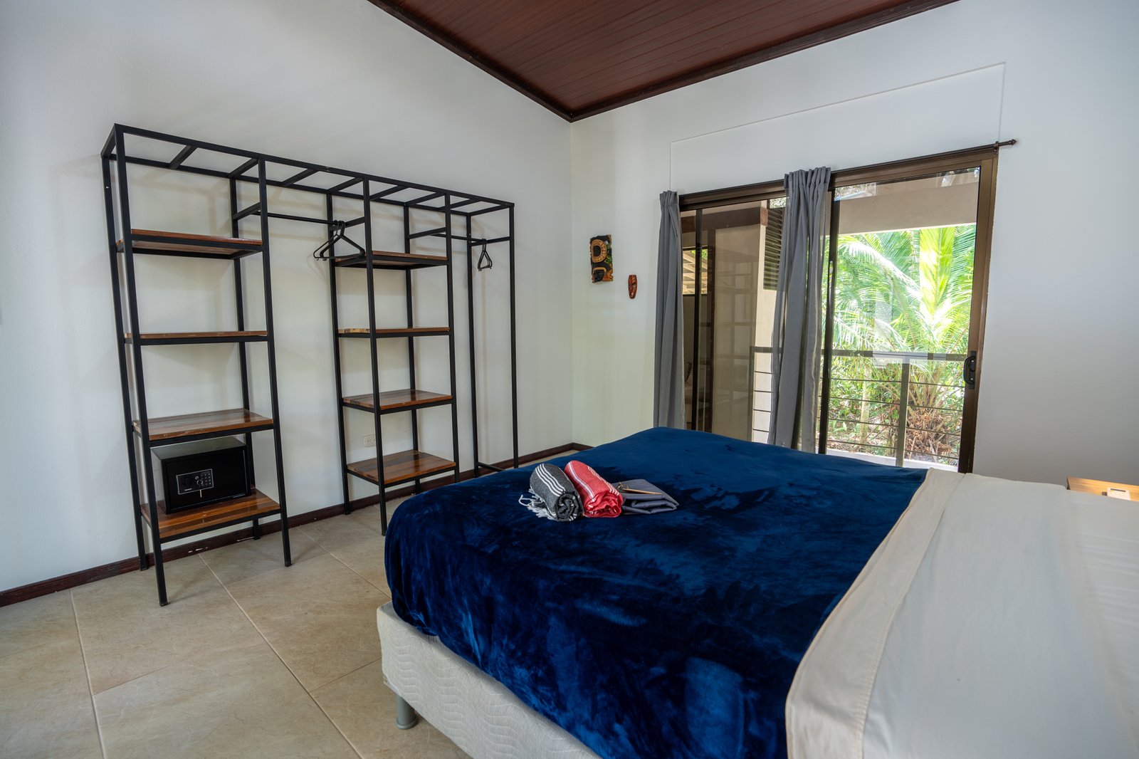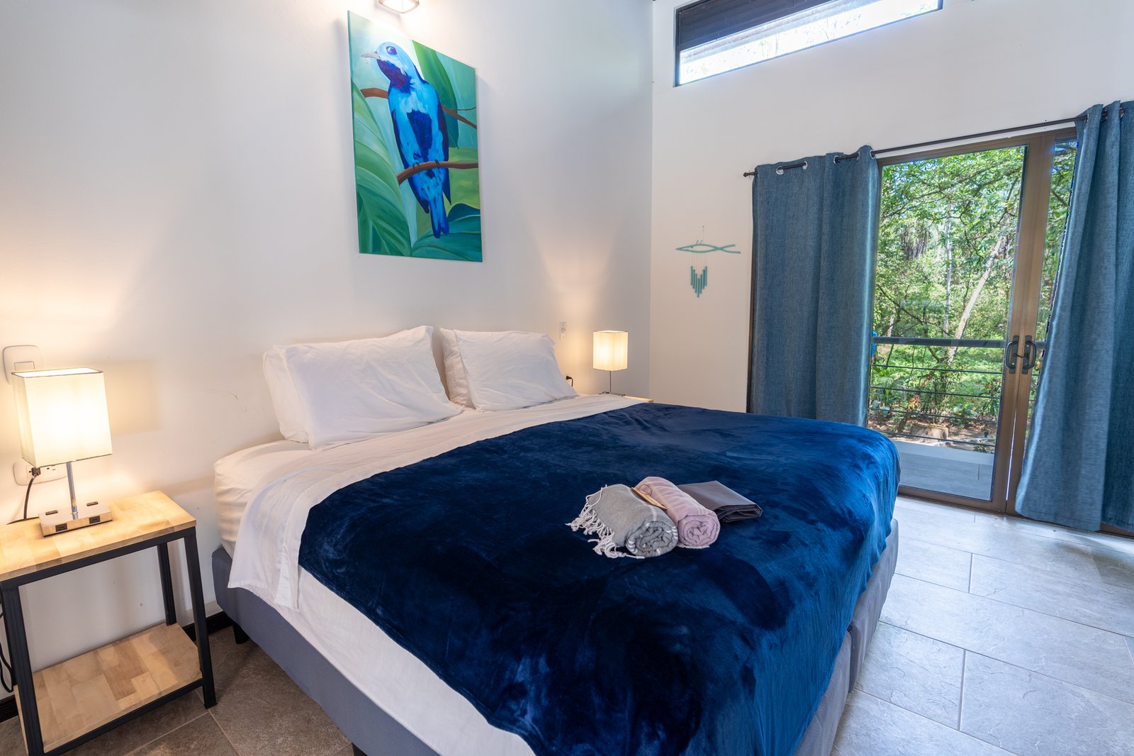 Single “Jungle” Shared Bath with A/C: A cozy single or double room featuring one queen-sized bed. This room shares a bathroom with only one other guest room, accommodating up to two guests.