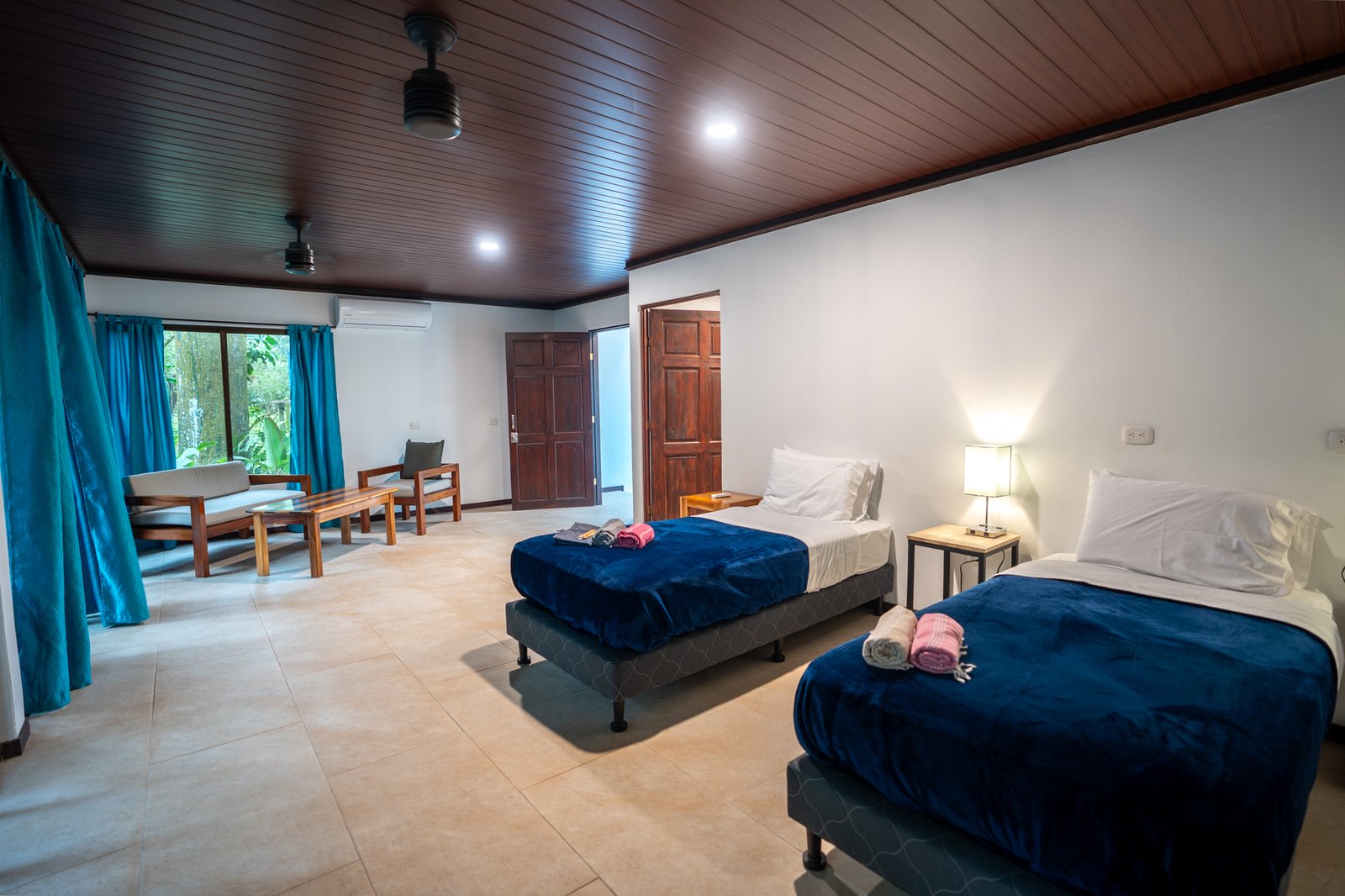Triple “Rainforest” En-suite with A/C: An expansive room featuring three XL single beds, comfortably accommodating up to three guests.